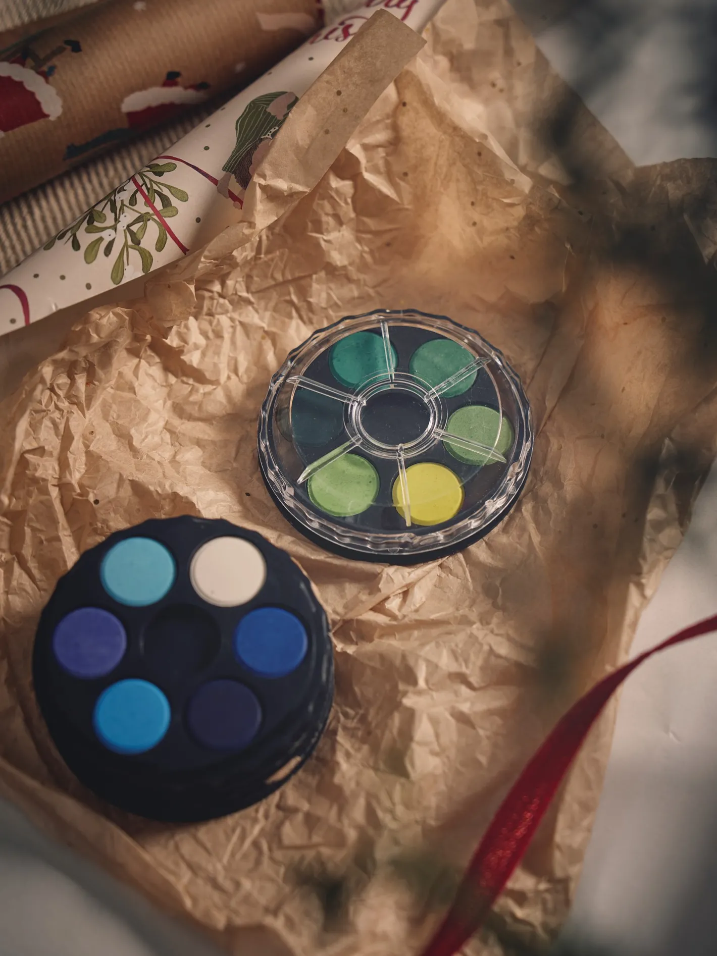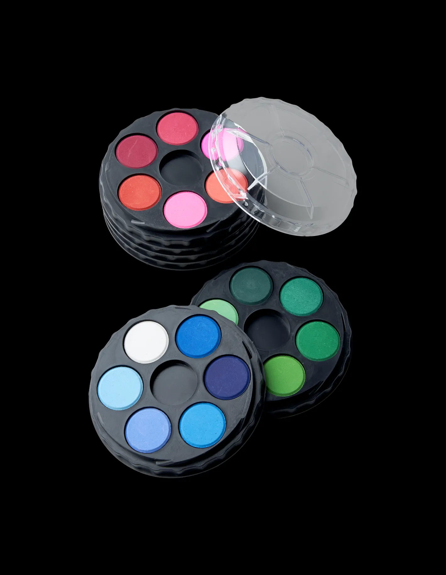 Søstrenes akvareller kommer i en pakke med 6 paletter, som hver indeholder 6 forskellige farver, dvs. 36 farver i alt. De stabelbare paletter gør det nemt at tage akvarellerne med på en kreativ rejse.