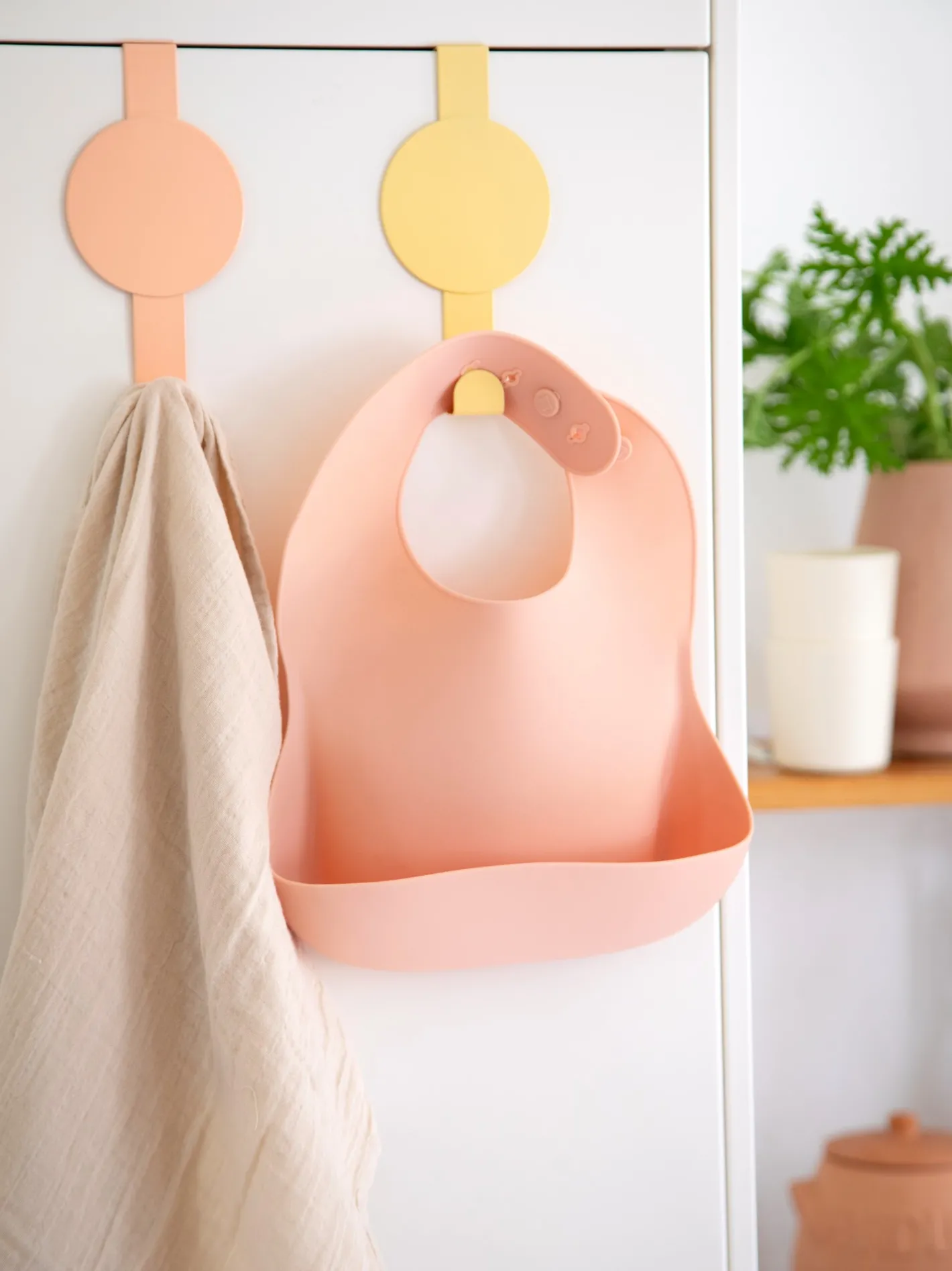 Denne silikonehagesmæk fra Mushie er lavet af fødevaregodkendt silikone. Den hjælper med at holde Deres barn og det omkringliggende område rent. Den dybe lomme fanger det meste af maden og mindsker rod på gulvet og på de kære smås tøj. De afrundede nakkelukninger sikrer en behagelig pasform.Søstrene anbefaler at rengøre den med varmt sæbevand før brug.Bemærk venligst, at produktet altid skal bruges under opsyn af en voksen. Undersøg produktet før hver brug. Afskaf ved tegn på skade eller svaghed.