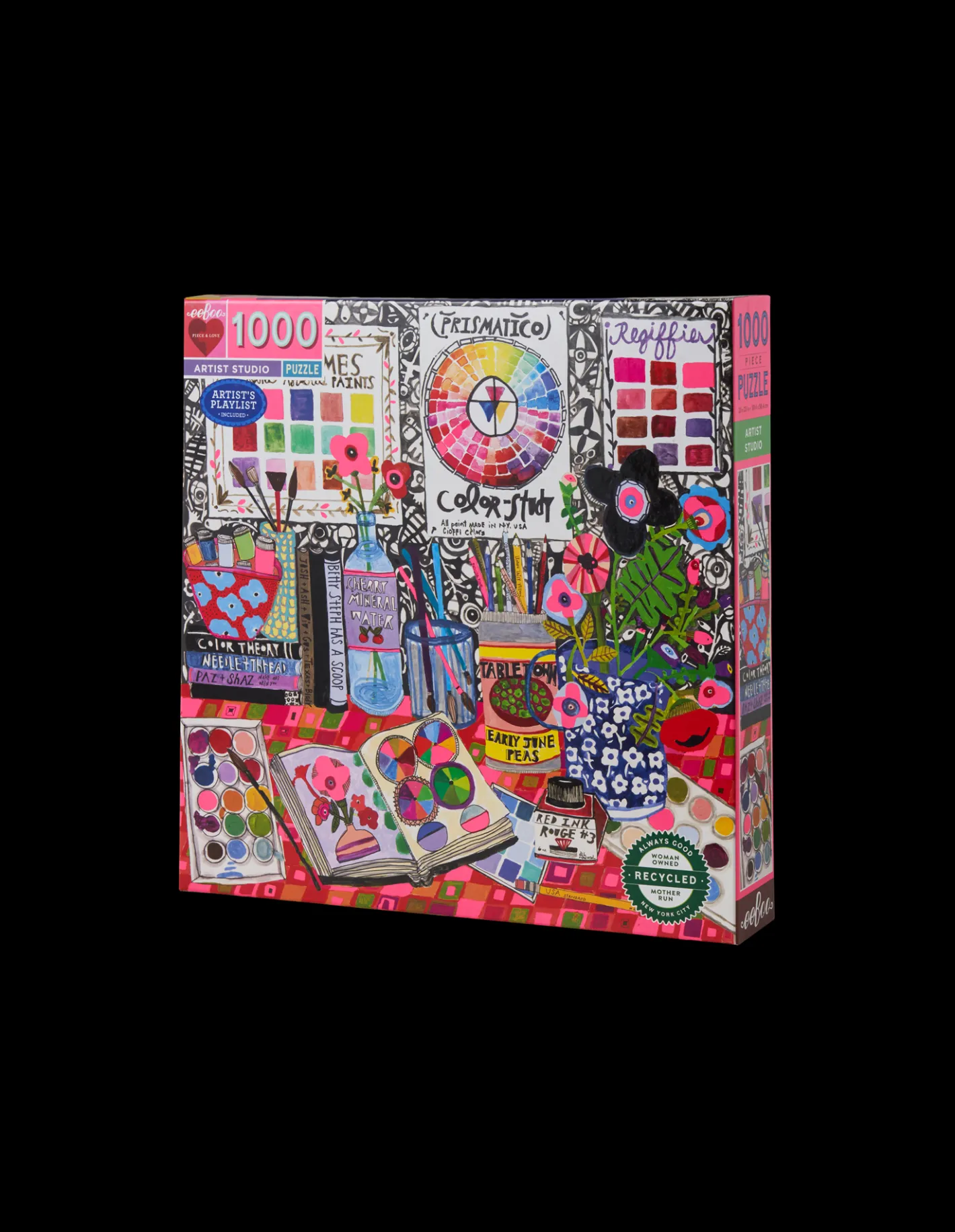 Søstrene gør Dem venligst opmærksom på, at denne vare kun forhandles online.Artist Studio-puslespillet fra eeBoo er lavet af papir og måler 58,4 x 58,4 cm, når det er samlet. Puslespillet har 1000 brikker. Illustrationen er af Sharon Nullmeyer.Hvad end de hygger sig indenfor på regnvejrsdage eller sidder på terrassen, når solen skinner, finder Anna og Clara stor fornøjelse i at lægge puslespil sammen. “Det er en beroligende aktivitet, som giver masser af plads til at småsnakke, alt imens man lægger puslespillet,” siger Clara.Hun samler metodisk brikkerne, der danner en ramme om puslespillet, mens Anna forsøger at finde farver og former, der lader til at passe sammen. De har hver deres tilgang til at lægge puslespil, og sammen tilbringer de en eftermiddag, hvor de harmonisk arbejder sammen. “Det er altid en stor glæde, når det endelige resultat afsløres, og man kan fordybe sig i de skønne små detaljer i billedet,” siger Anna med et smil.