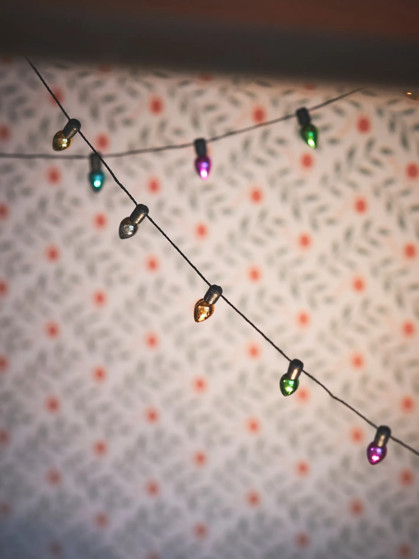 Søstrenes guirlande måler 180 cm i længden og indeholder 65 dekorative pærer i forskellige farver.Tilføj et strejf af farve til et lille juletræ, eller brug det til at give Deres gaver et festligt præg.