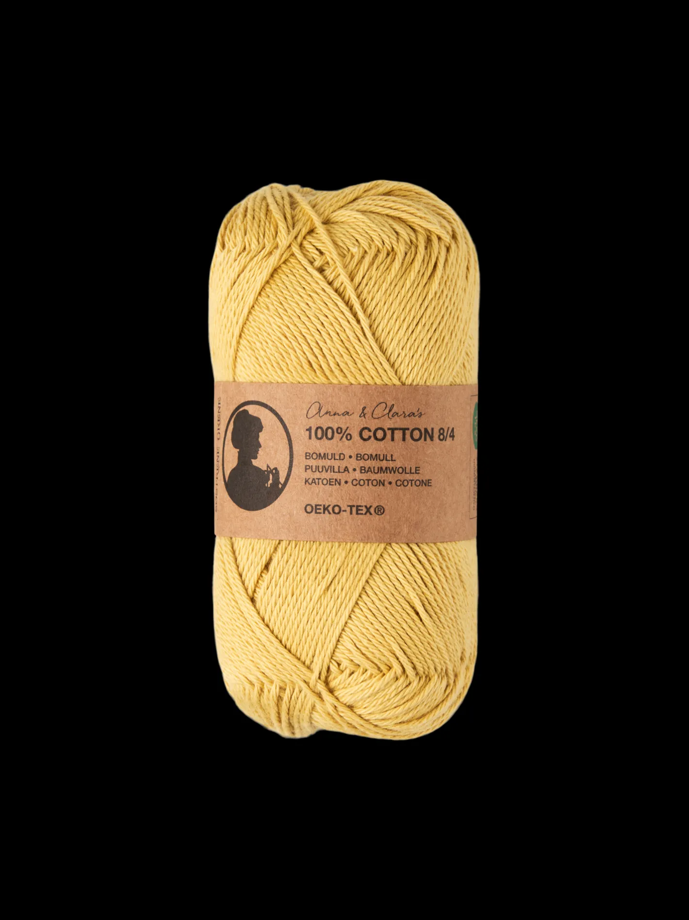 Søstrenes vidunderlige 8/4 bomuldsgarn er lavet af 100 % bomuld og er STANDARD 100 by OEKO-TEX®-certificeret*. Søstrene anbefaler, at De bruger en hæklekrog eller strikkepinde i størrelse 2,5-3 mm.*17.HIN.13831 HOHENSTEIN HTTI.