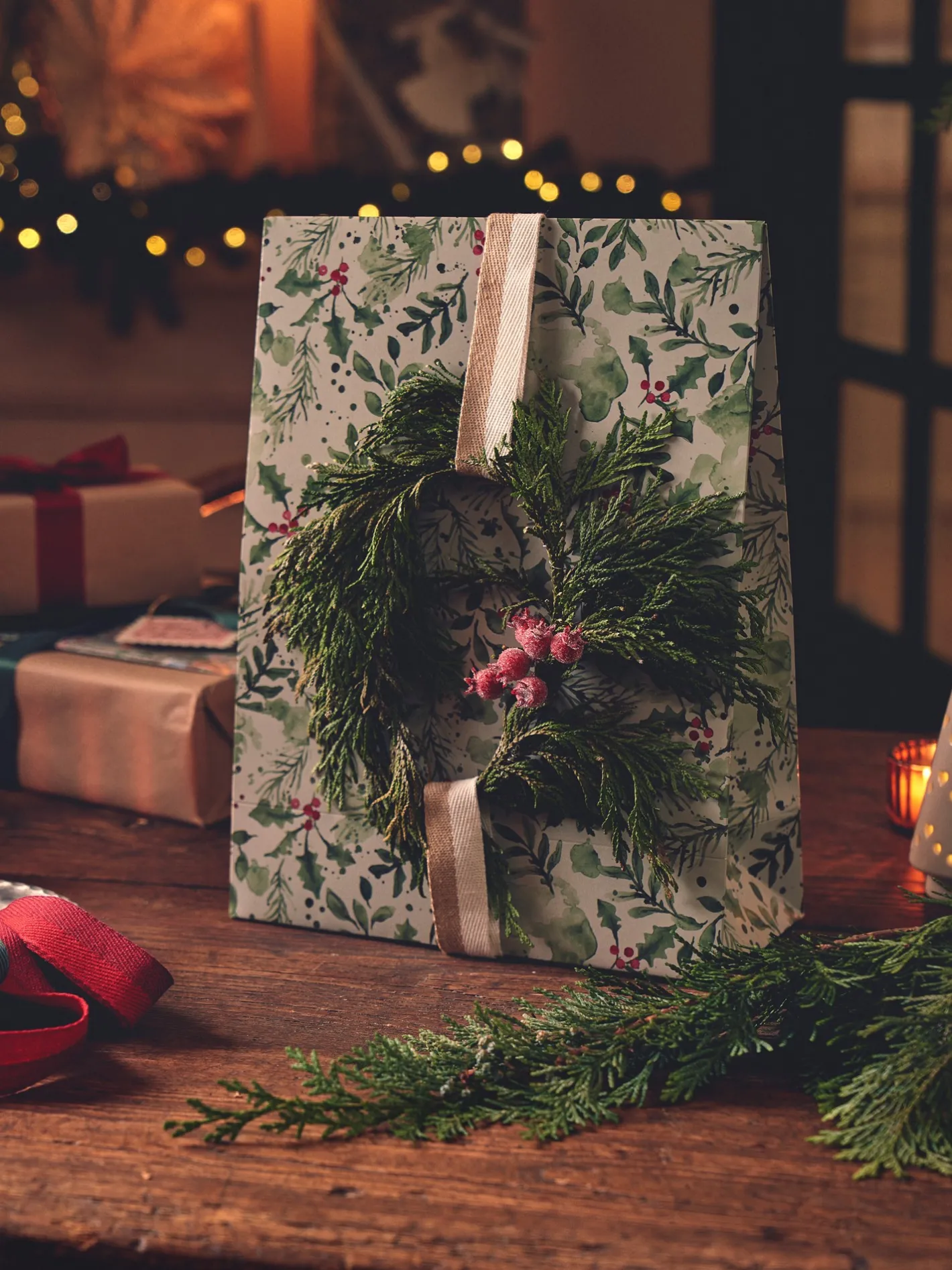 Søstrenes gavepose er lavet af FSC®-certificeret papir. Gaveposer kan genbruges til enhver festlig lejlighed, eller kan bruges af modtageren som en skøn opbevaringsløsning.
