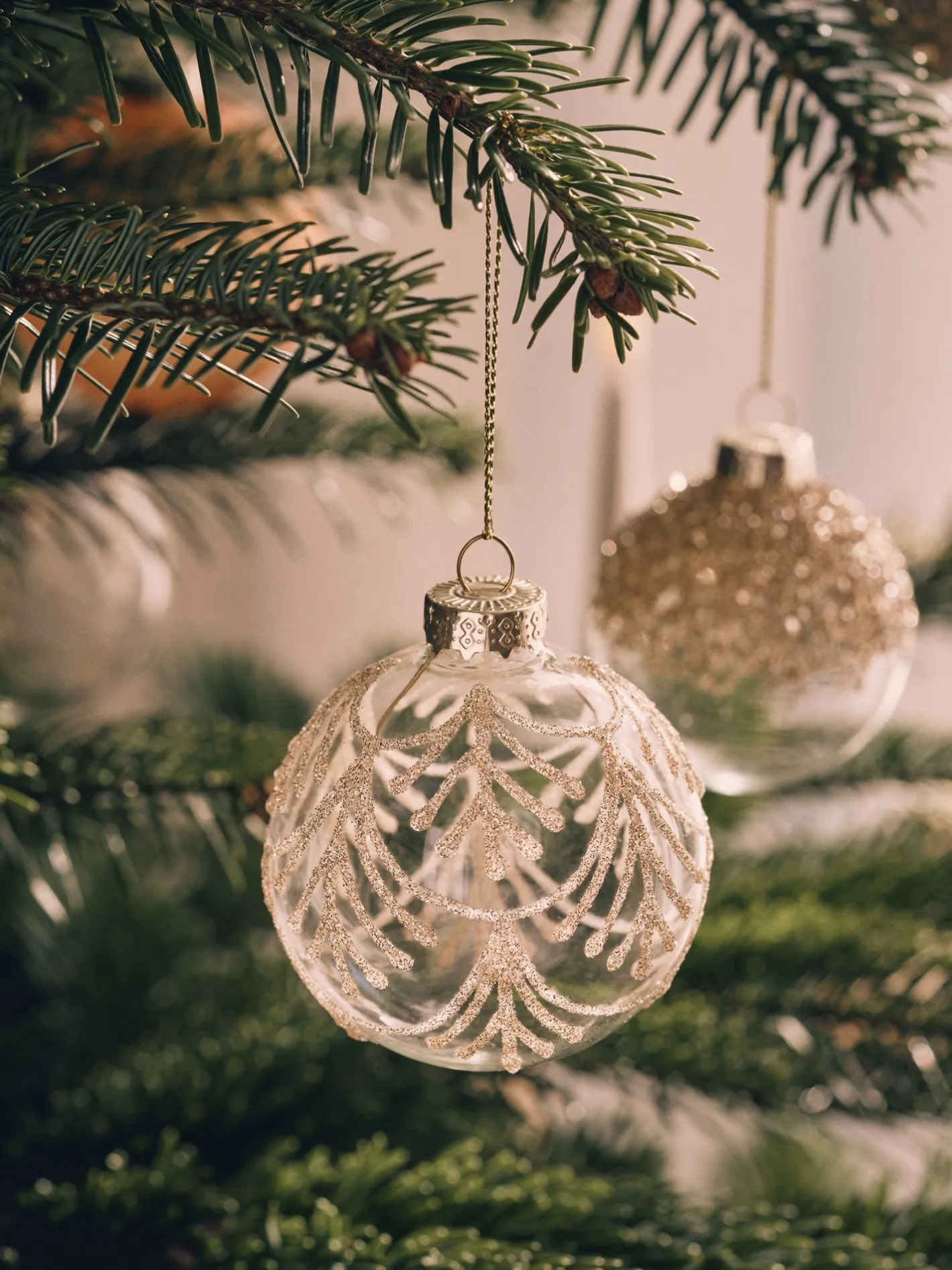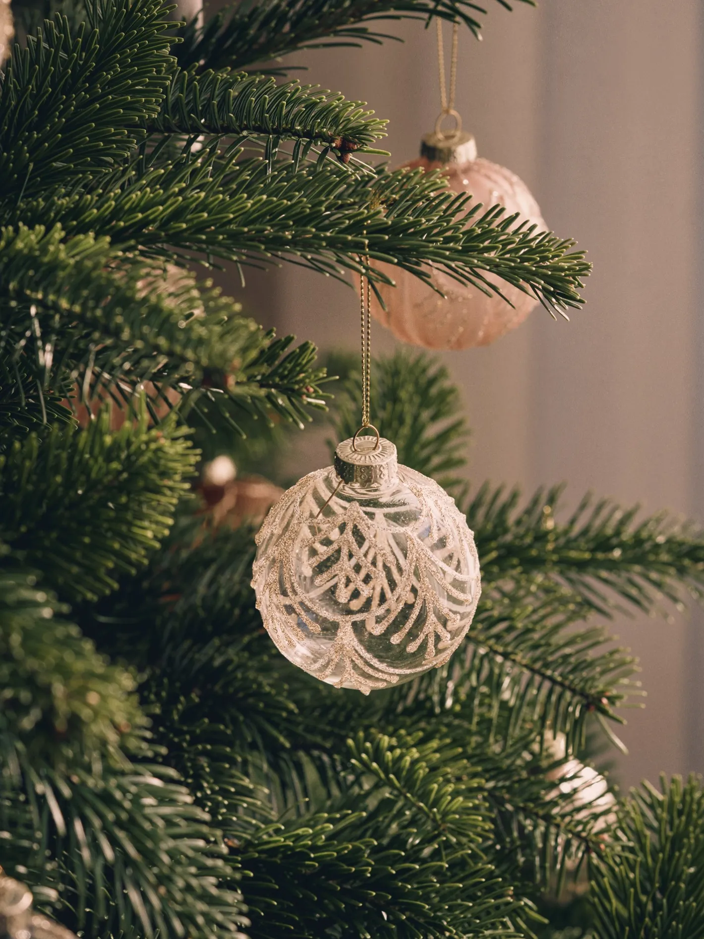 Søstrenes julekugle er lavet af glas og har en diameter på 7 cm.
