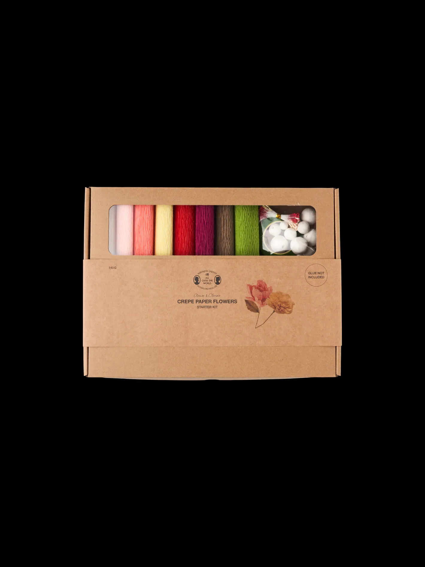 Søstrenes papirblomst-sæt er perfekt til Deres hjemmelavede buket. Den indeholder 8 ruller FSC®-certificeret crepepapir på 25 x 80 cm, 80 støvdragere i 3 farver, vatkugler i forskellige størrelser, 12 metal stængeltråde og 15 m blomstertape.