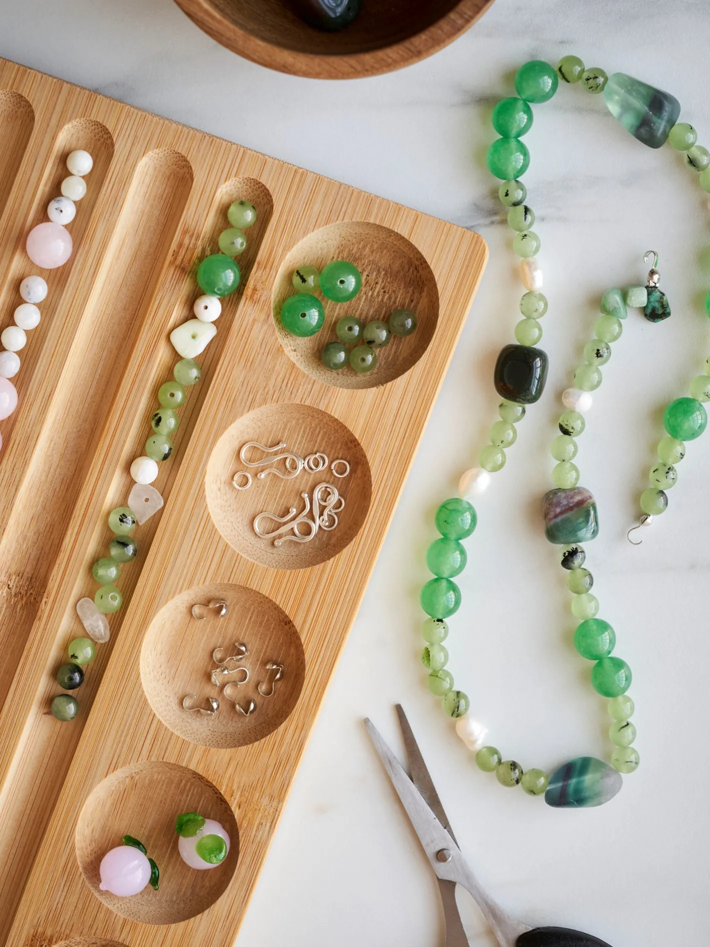Søstrenes perlebræt til armbånd er lavet af FSC®-certificeret bambus og måler 23 x 15 x 1,5 cm.