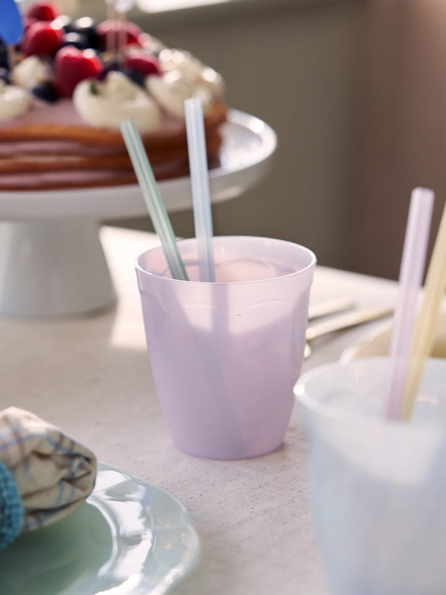 Søstrenes glas i polypropylen har en diameter på 8,5 cm og kan genbruges. En pakke indeholder 4 glas. Glassene er lavet i Italien.Glassene er en del af vores sortiment af plasttallerkener og -glas til flere formål – til picnic, strandture og livets små og store øjeblikke.Sortimentet til flergangsbrug fungerer som et alternativ til engangspaptallerkener og -kopper, som vi har besluttet at udfase som en del af Søstrene Grenes ansvarlighedsstrategi. Hos Søstrene Grene arbejder vi skridt for skridt på at skabe et produktsortiment med mindst mulig klimabelastning, og dette er blot et af vores mange initiativer.Søstrene gør venligst opmærksom på, at disse glas tåler fryser og opvaskemaskine op til 70 grader, men de tåler ikke mikrobølgeovn eller ovn.