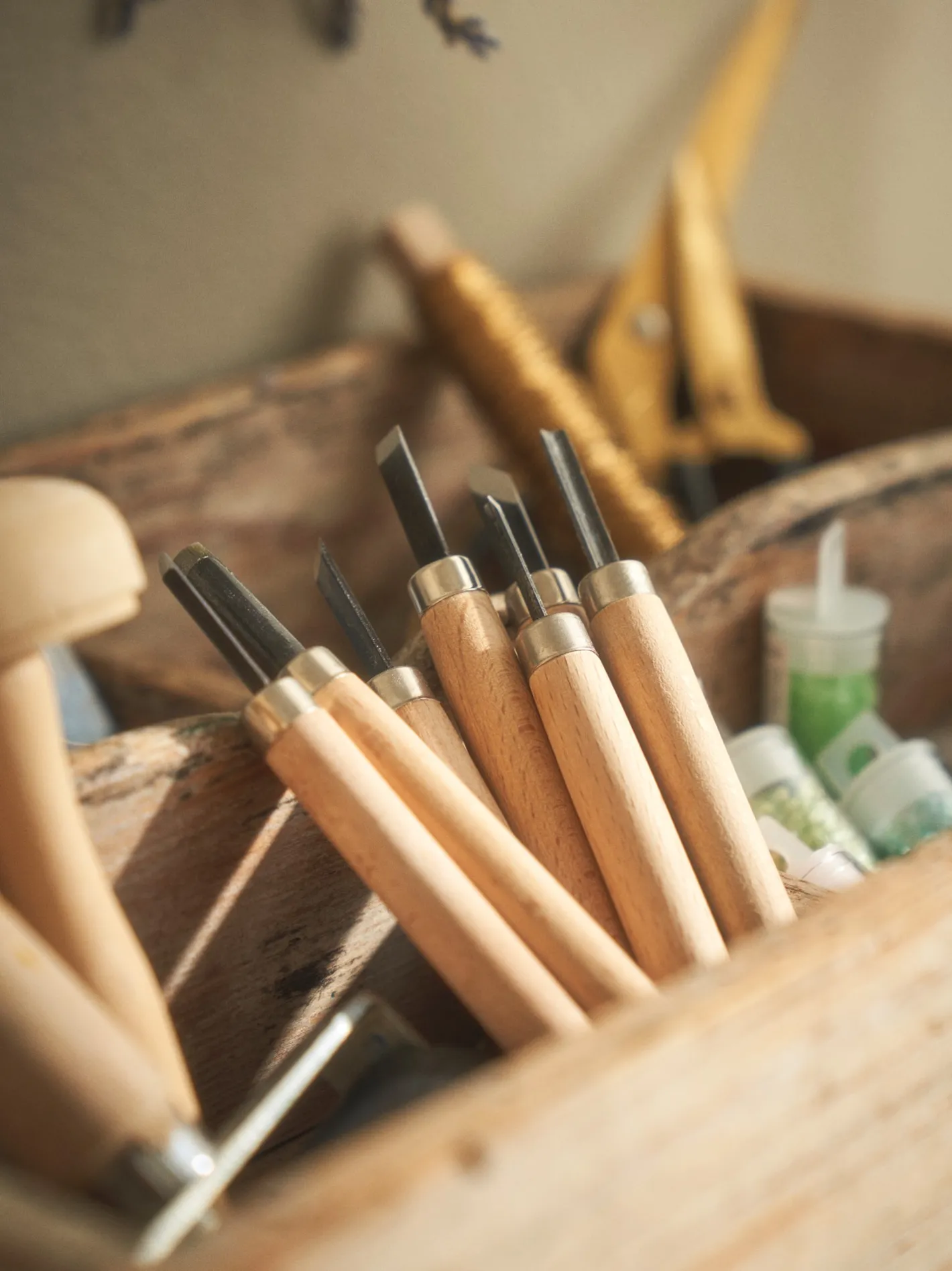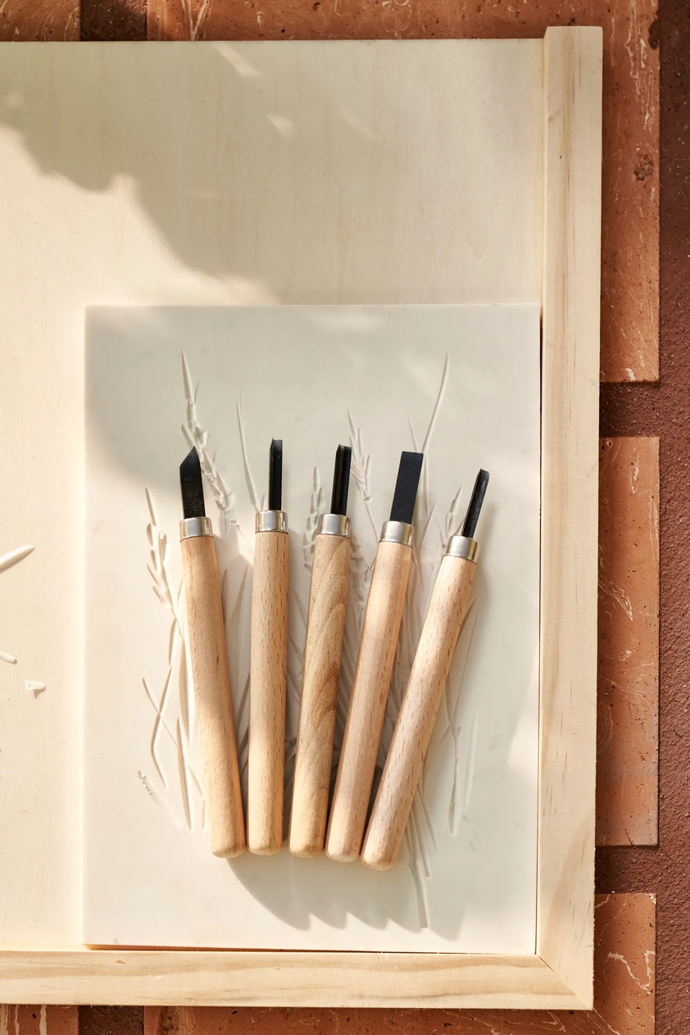 Søstrenes sæt til linoleumstryk er lavet af jern og bøgetræ, der hver måler 13 x 1 cm. Det indeholder 5 udskæringsværktøjer til linoleumskunst.”Linoleumssnit, også kendt som linoleumstryk, er en form for grafisk trykteknik, der indebærer udskæringen af et mønster eller design i en linoleum- eller gummioverflade, som derefter kan bruges til trykning,” forklarer Anna med et smil. “Det er en vidunderlig kreativ aktivitet, og disse værktøjer til linoleumstryk kan hjælpe Dem med at skære Deres ønskede design i Deres linoleumsplade.”