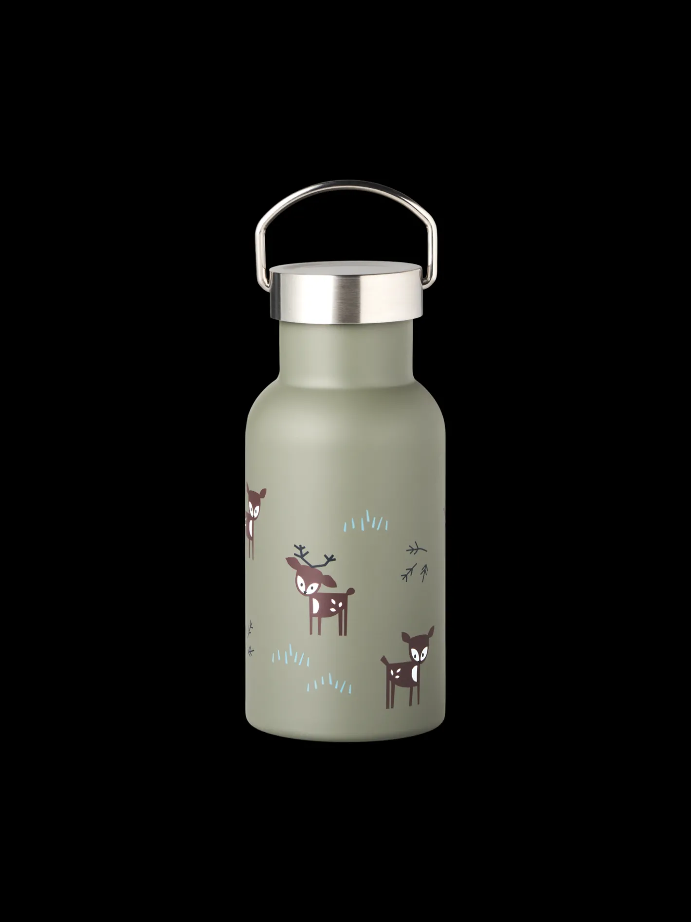 Denne termoflaske fra Fresk er dobbeltvægget og lavet af rustfrit stål. Den måler 23 x 10 x 8 cm og kan indeholde op til 350 ml. “Den leveres med to låg – et med sugerør og et med en sportstud,” siger Anna. “Perfekt til Deres næste store eventyr!””Ganske rigtigt. Den kan også holde Deres smås drikkevare varm eller kold i længere tid,” forklarer Clara. Udvælg Deres foretrukne Fresk-produkter, som De ønsker, og udforsk de mange vidunderlige motiver.