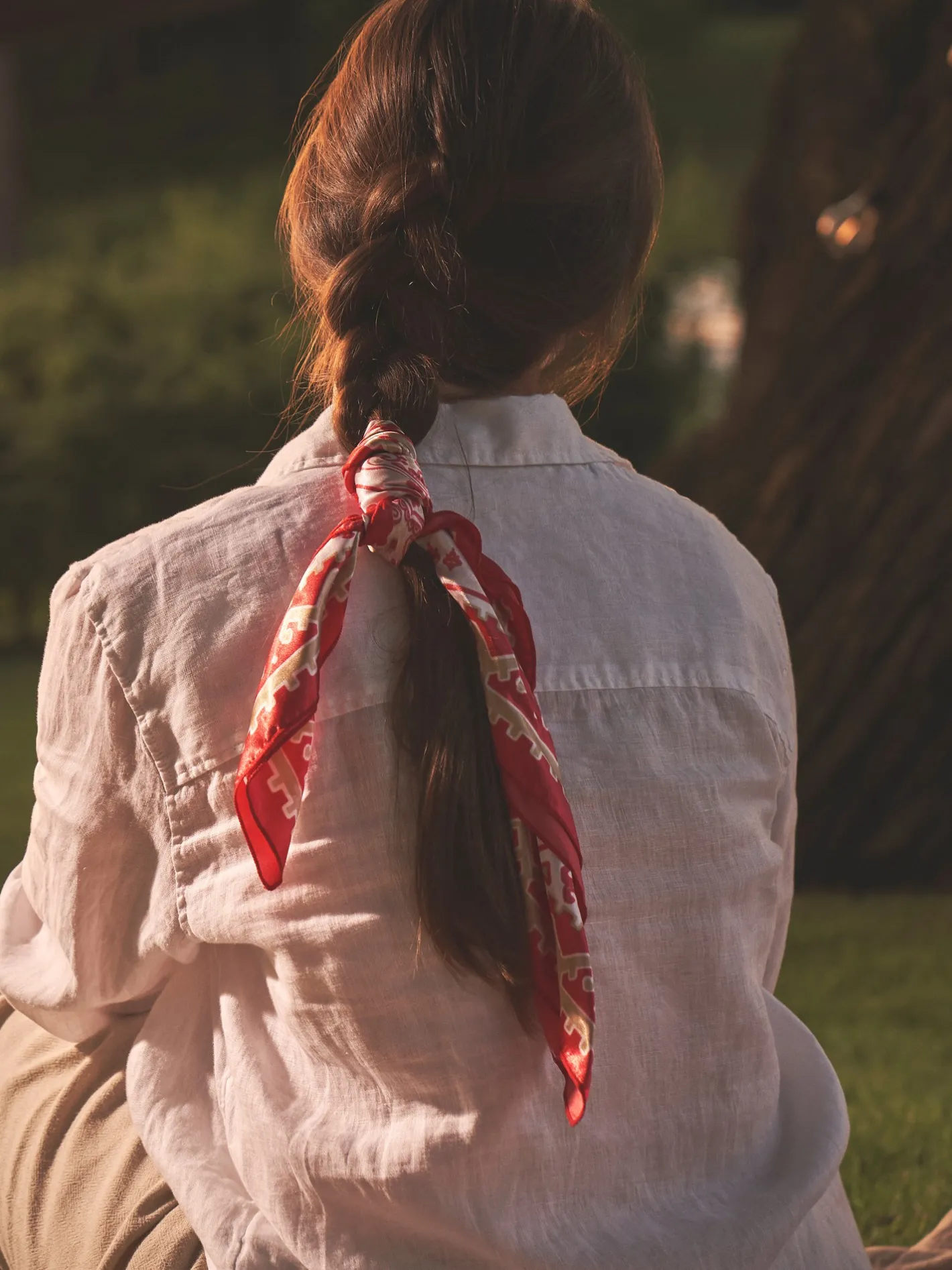 Søstrenes tørklæde er STANDARD 100 by OEKO-TEX®-certificeret og måler 55 x 55 cm.