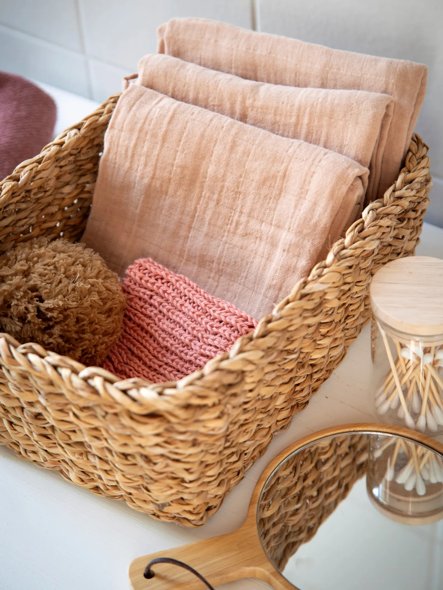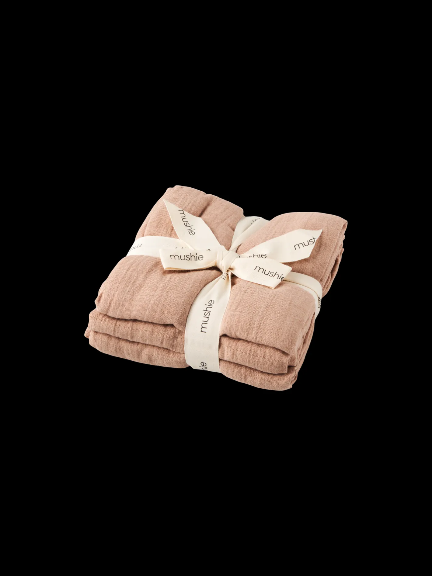 Stofbleerne fra Mushie kommer i en pakke med 3. De er lavet af bomuld og er praktiske i forskellige dagligdagssituationer, idet de både fungerer som beroligende minitæpper, pusleunderlag, til rengøring af små uheld og meget mere.