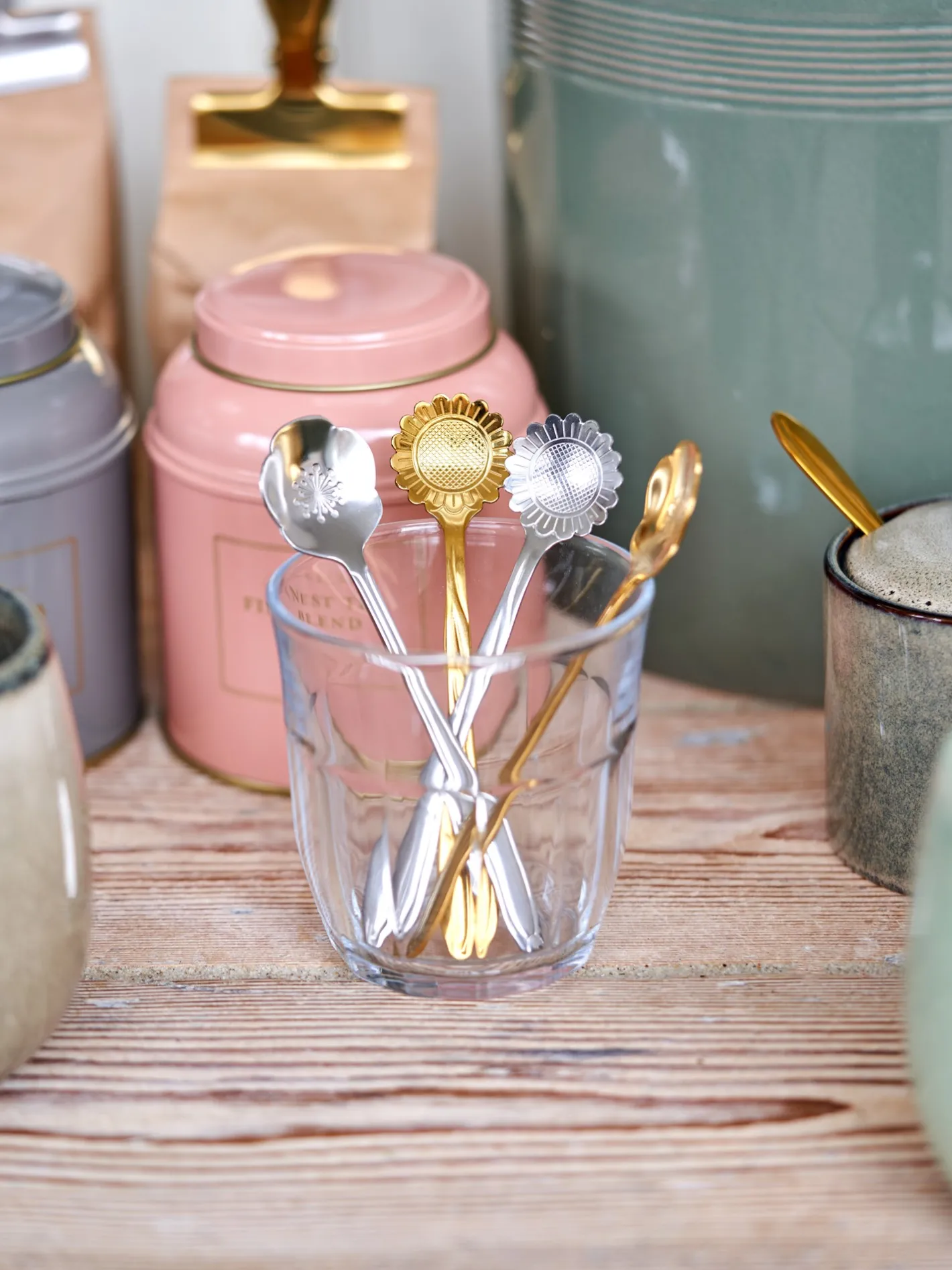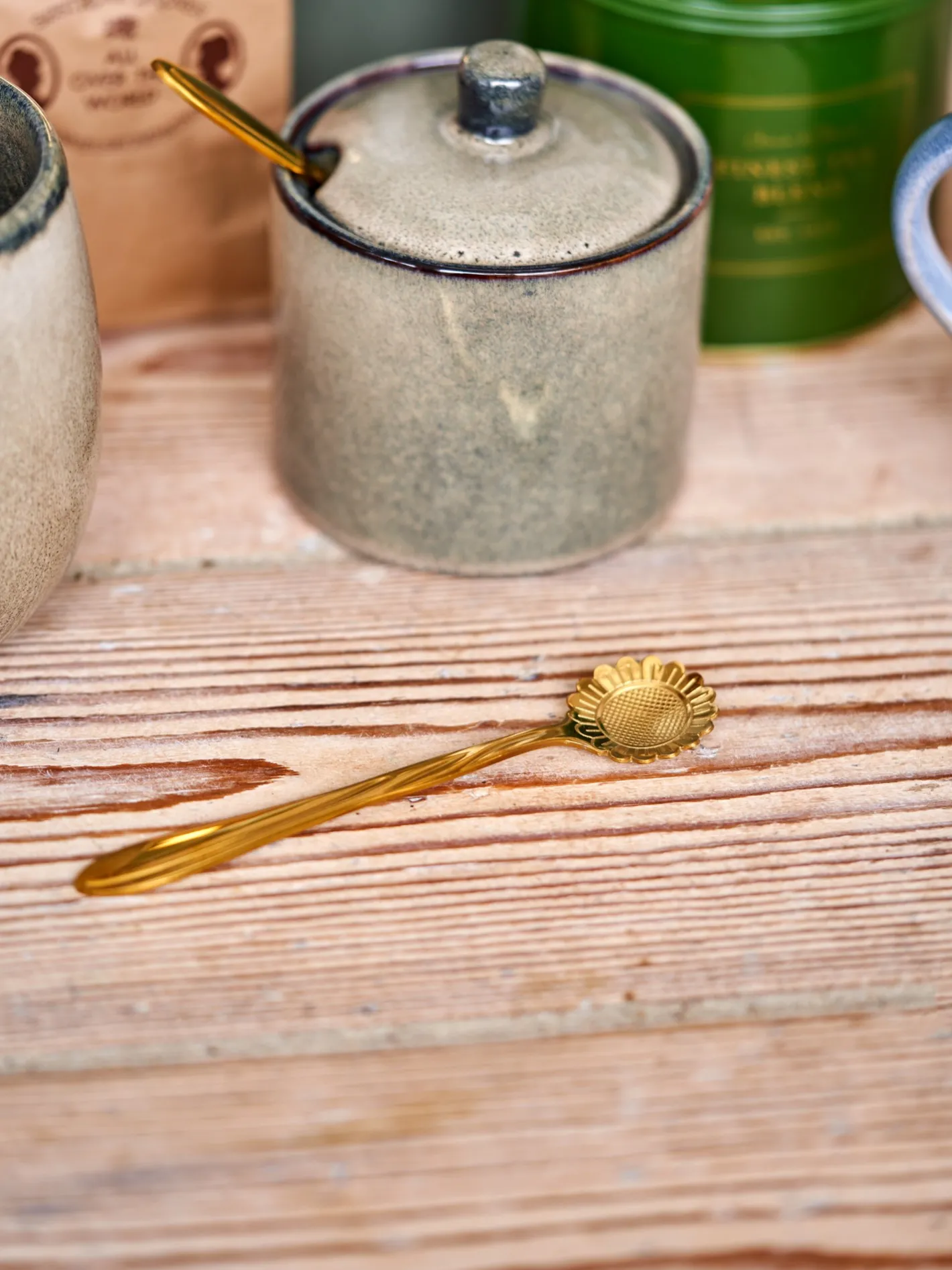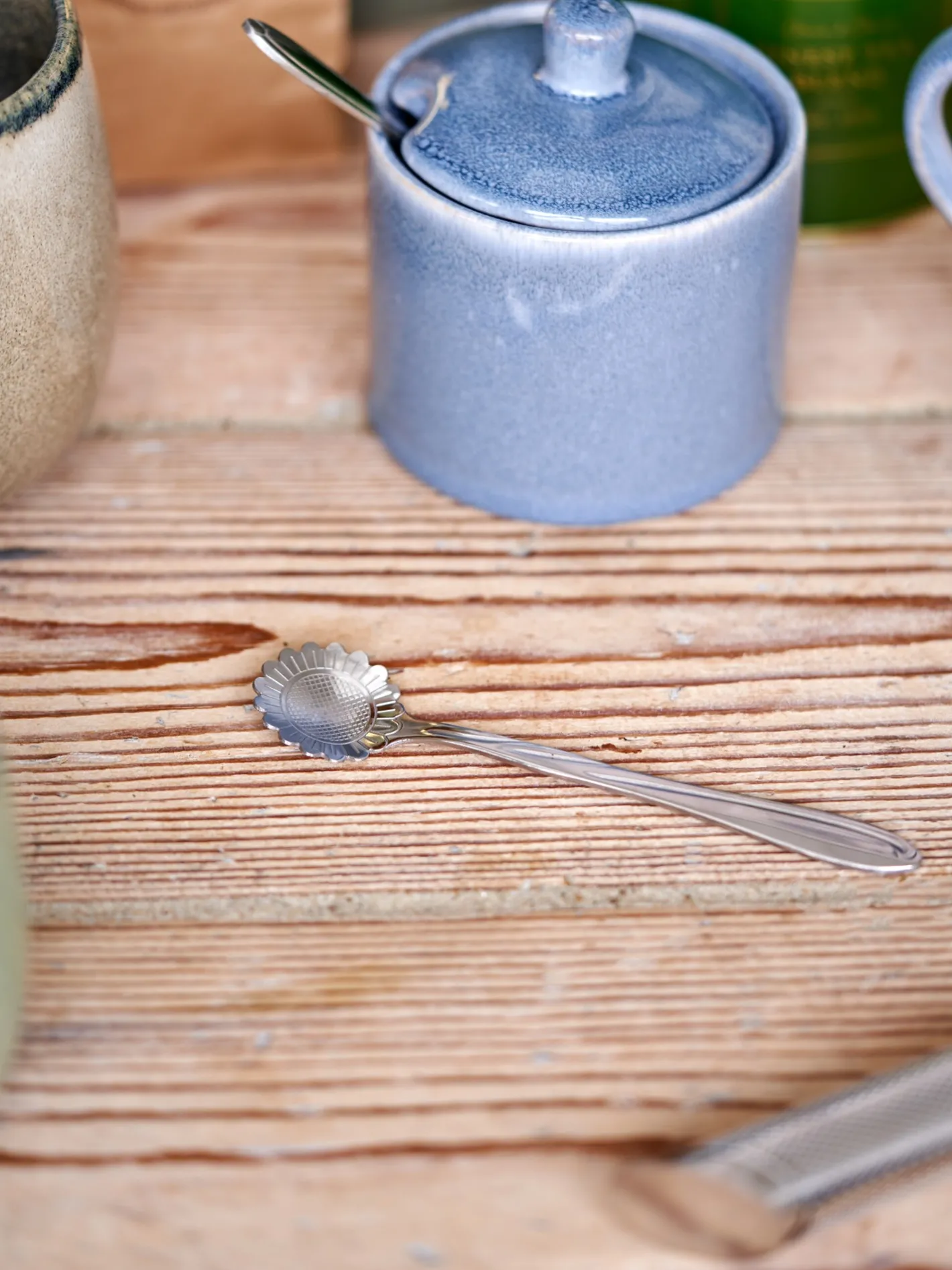 Søstrenes ske er lavet af rustfrit stål og måler 12,8 cm. Skeens hoved er formet som en charmerende solsikke, hvilket gør den til en skøn tilføjelse til enhver borddækning.