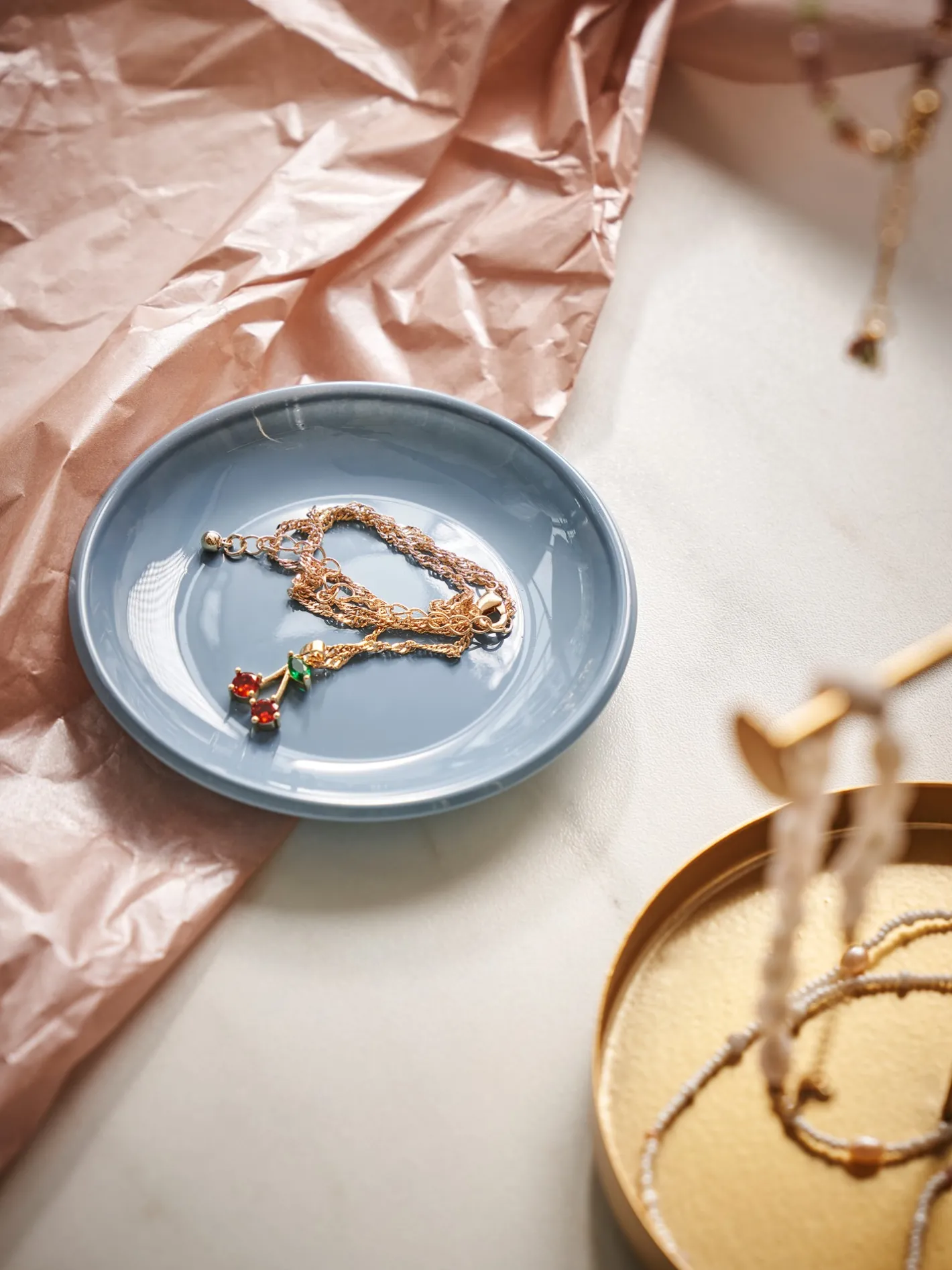 Søstrenes dekorative fad er lavet af glas og har en diameter på 10 cm.Søstrene gør venligst opmærksom på, at denne skål ikke er fødevaresikker og udelukkende er til dekorativ brug.