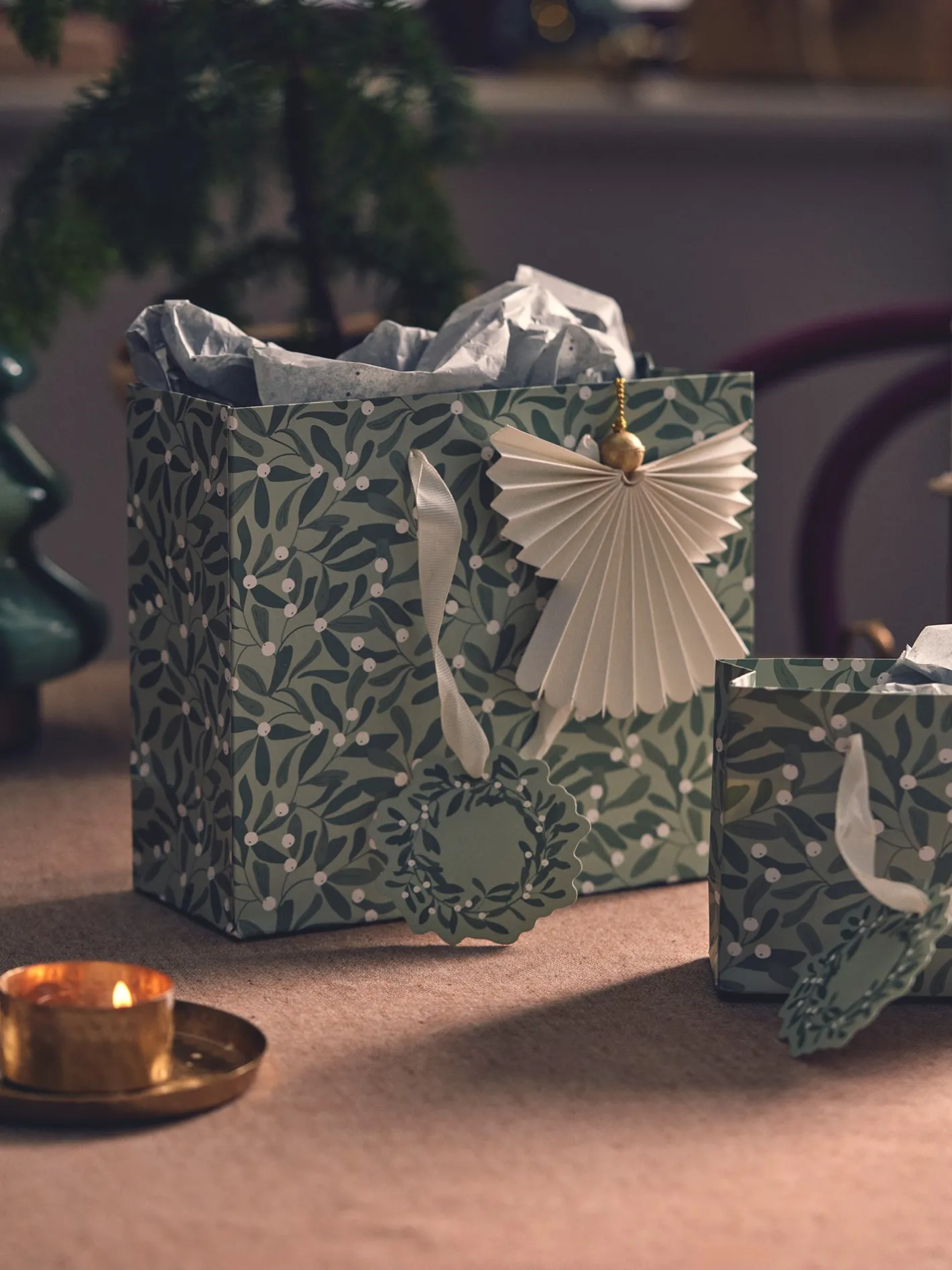 Søstrenes gavepose er lavet af FSC®-certificeret papir og har en hank og et påsat gavemærke. Gaveposer kan genbruges til enhver festlig lejlighed, eller kan bruges af modtageren som en skøn opbevaringsløsning.