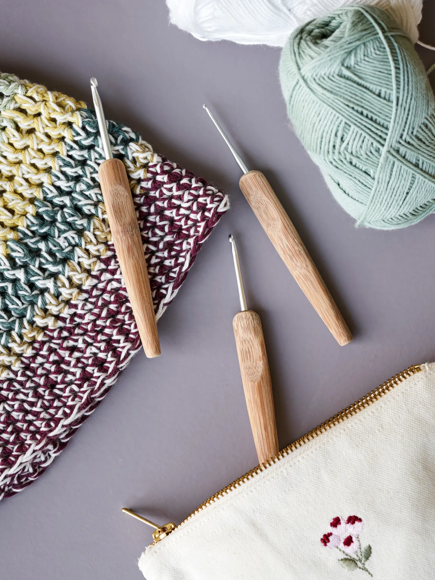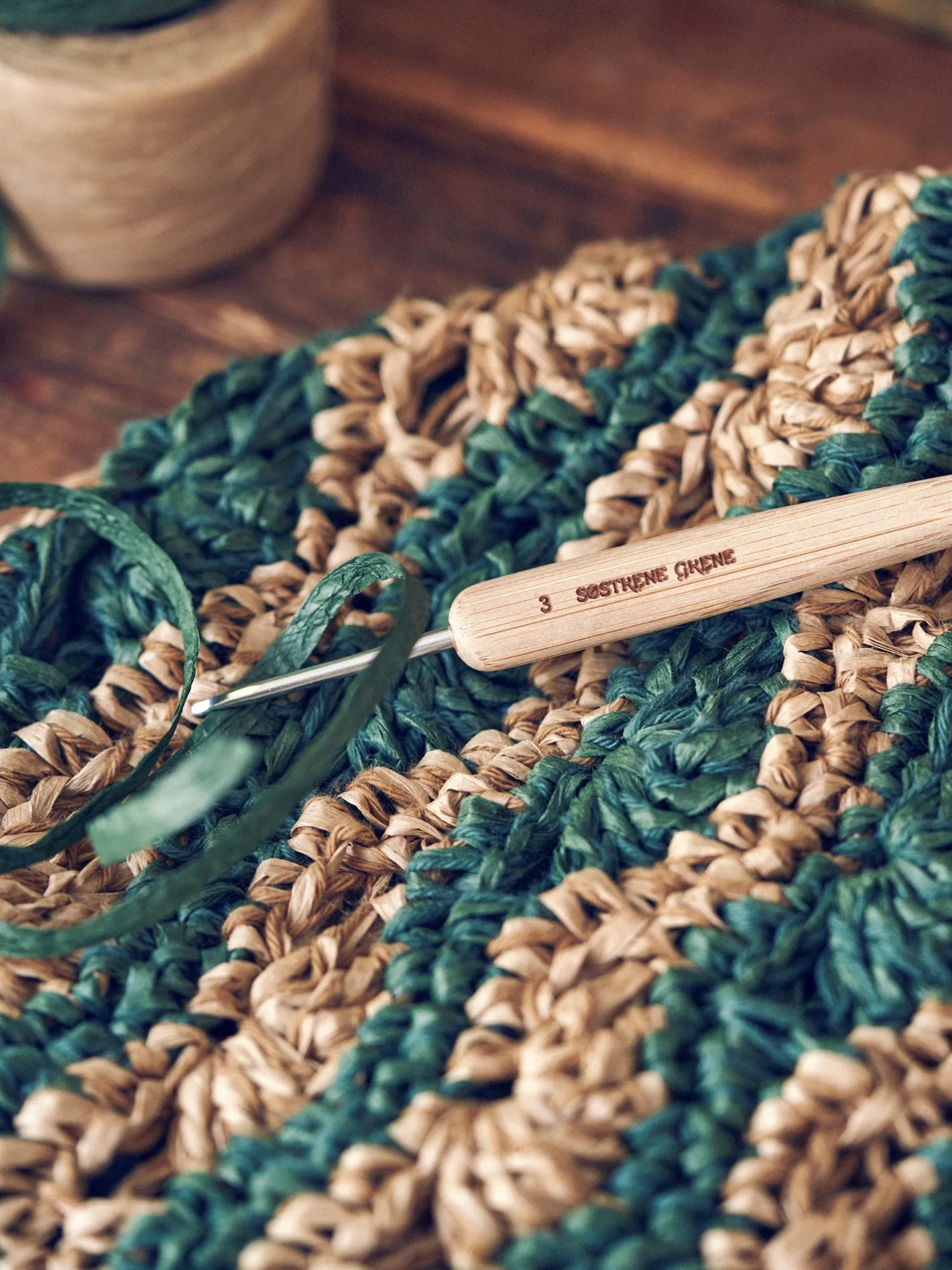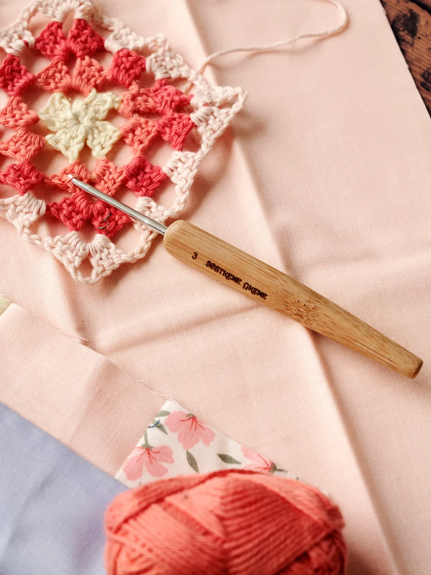 Søstrenes hæklenål er lavet af bambus, og har en størrelse på 3 mm.