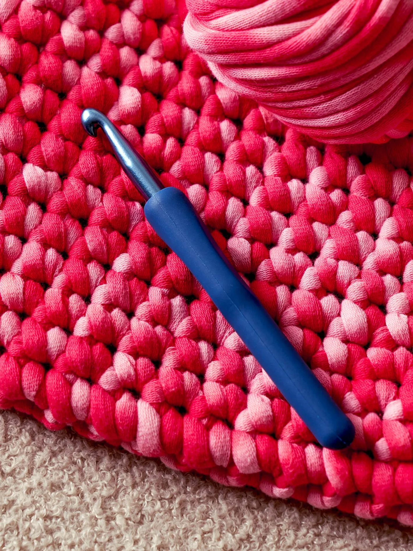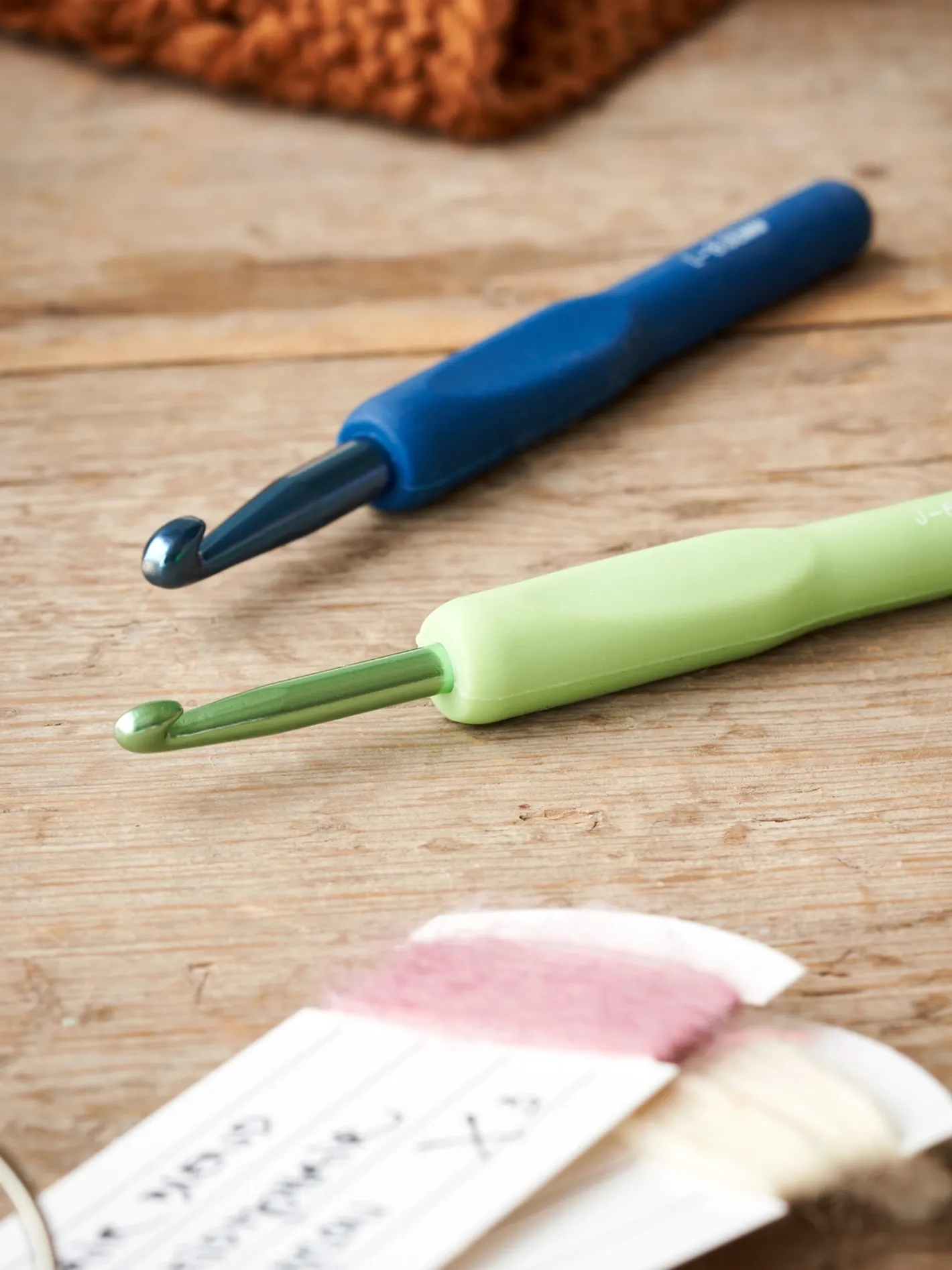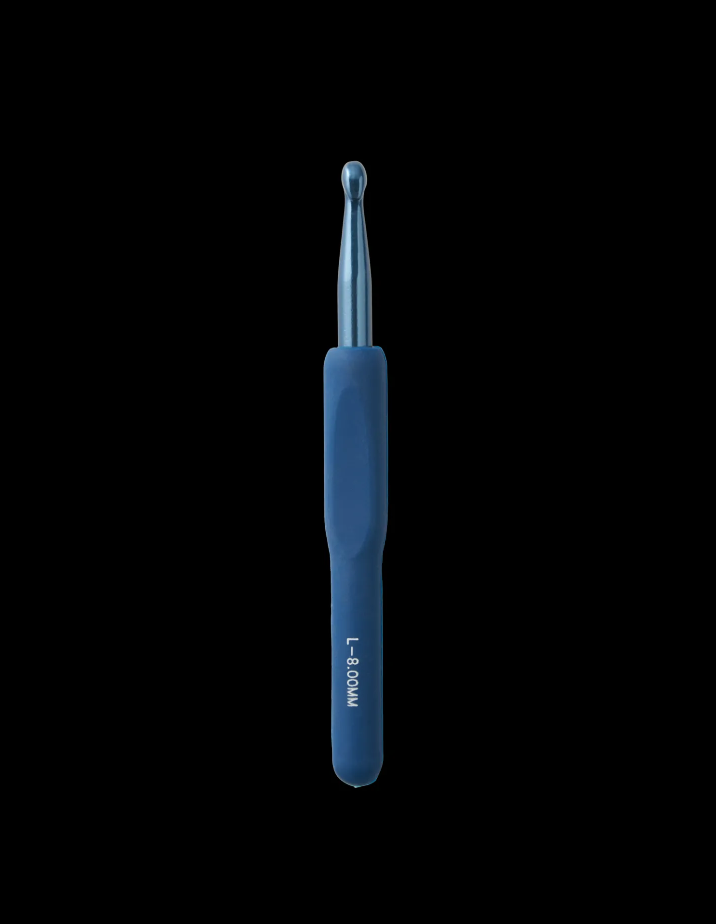Søstrenes hæklenål har en diameter på 8 mm og en længde på 14 cm.