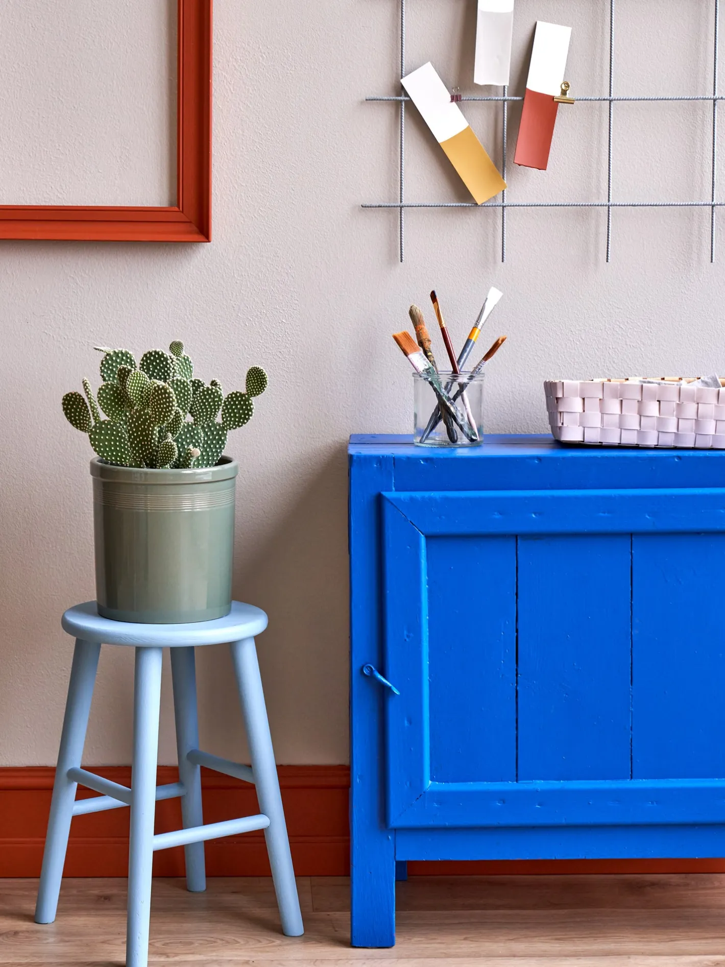 Søstrene gør Dem venligst opmærksom på, at denne vare kun forhandles online. Malingen af Color Stories i farven Almueblå er en akrylmaling. Den kommer i en spand på 900 ml, som dækker 6-8 m2. Malingen kan bruges på en lang række overflader som vægge, møbler, vinduesrammer og meget mere. Mal to tynde lag for ideel dækning. Malingen produceres i Danmark.”At bringe farve ind i Deres hjem er en vidunderlig måde at sætte et personligt præg på Deres interiør,” siger Anna med stor glæde. Hun er netop blevet færdig med at male to spisebordsstole i søstrenes yndlingsfarver og kigger nu på væggen i sit hobbyrum med et målrettet blik.”Bare husk at dække eventuelle overflader af, så de ikke bliver dækket af lige så meget maling som dit ansigt, kære Anna,” griner Clara. “Det er rigtigt,” svarer hendes søster. “Og vi skal også sørge for at sætte malertape rundt om kanterne for rene linjer.”Søstrene anbefaler, at De lader malingen tørre i 6-12 timer mellem lagene. De bemærker venligst, at der ikke medfølger malerartikler til malingen, og at farven kan variere afhængig af Deres skærm. De kan finde en maleguide på søstrenes Color Stories-brandside.