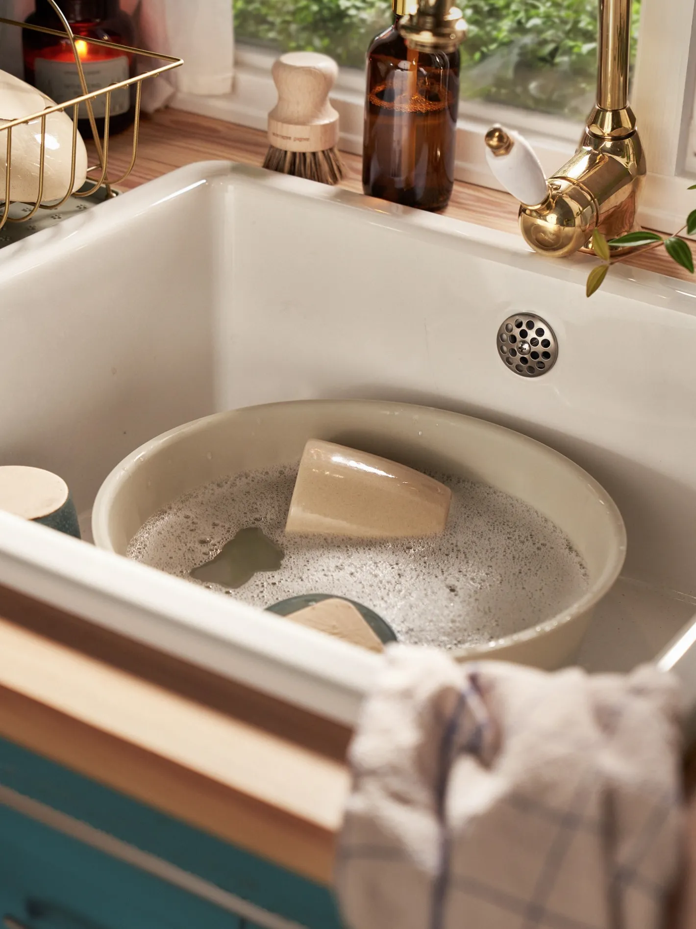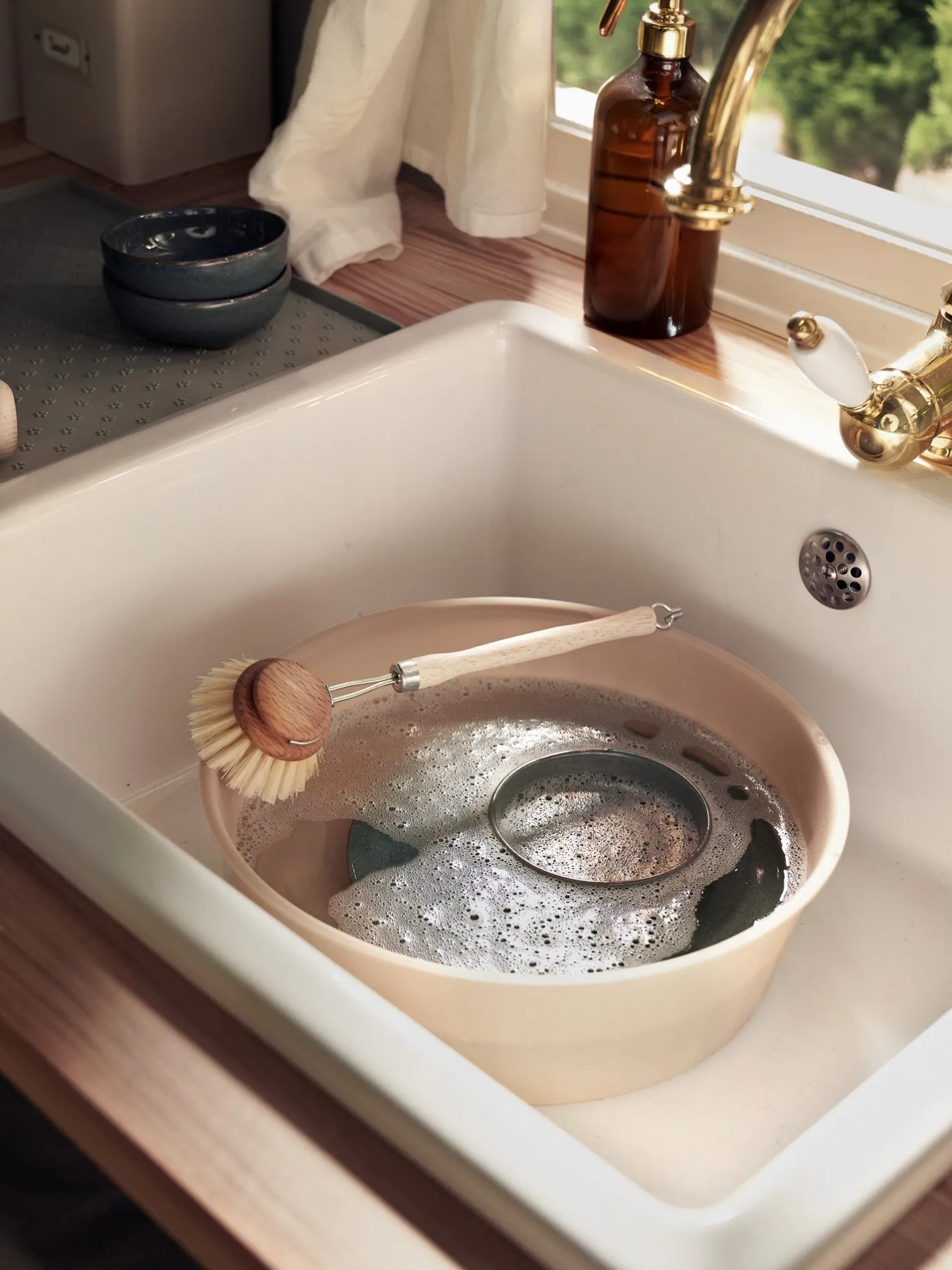 Tag nemt fat på opvasken med søstrenes vaskebalje. Den er lavet af plastik og måler 9,5 x 29,5 cm.