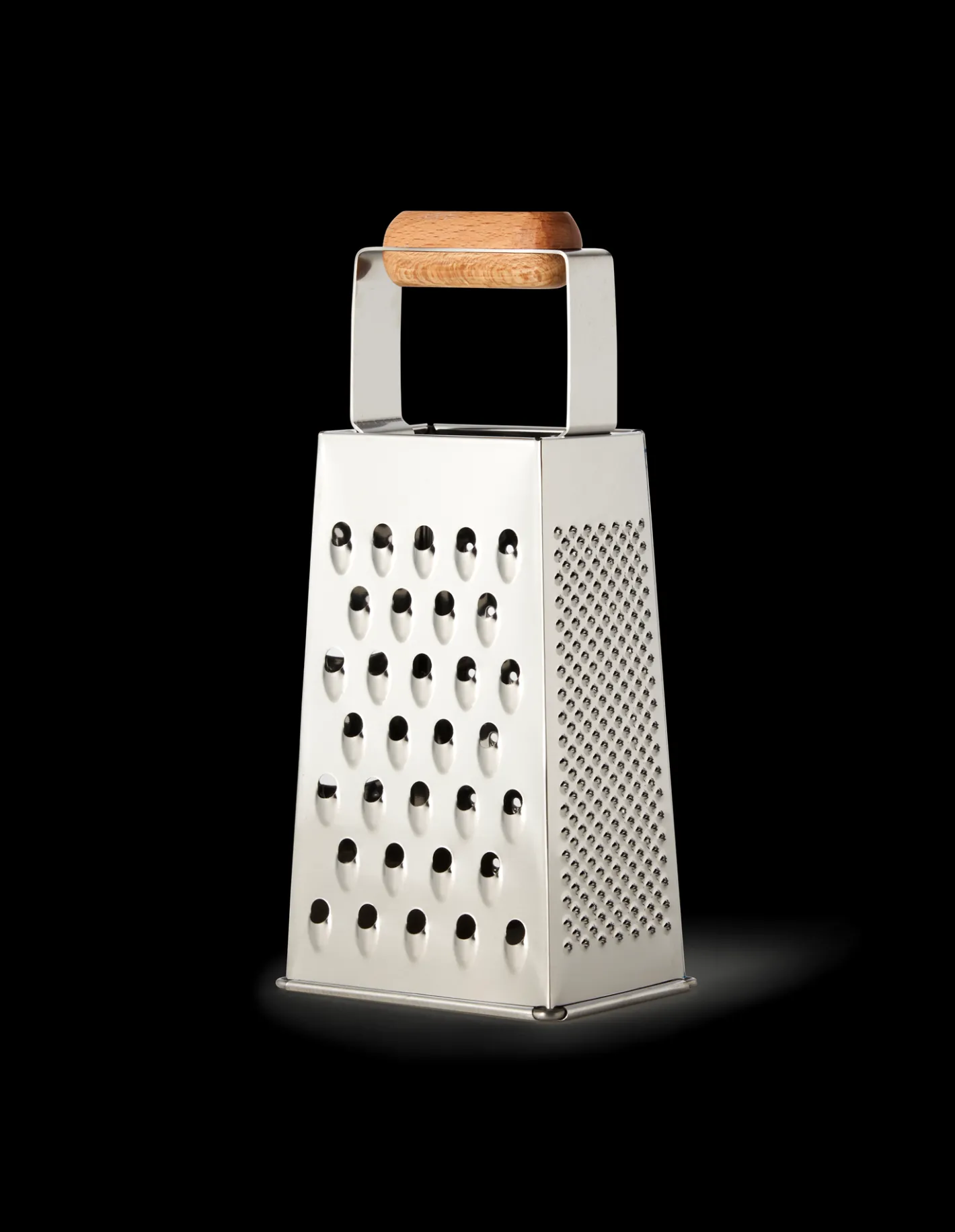 Søstrenes rivejern er lavet af rustfrit stål og har et dejligt træhåndtag lavet af FSC®-certificeret birketræ. Det måler 8,7 cm i længden, 6,4 cm i bredden og 17,5 cm i højden. “Udstyr Deres køkken med alle de nødvendige redskaber,” anbefaler søstrene.