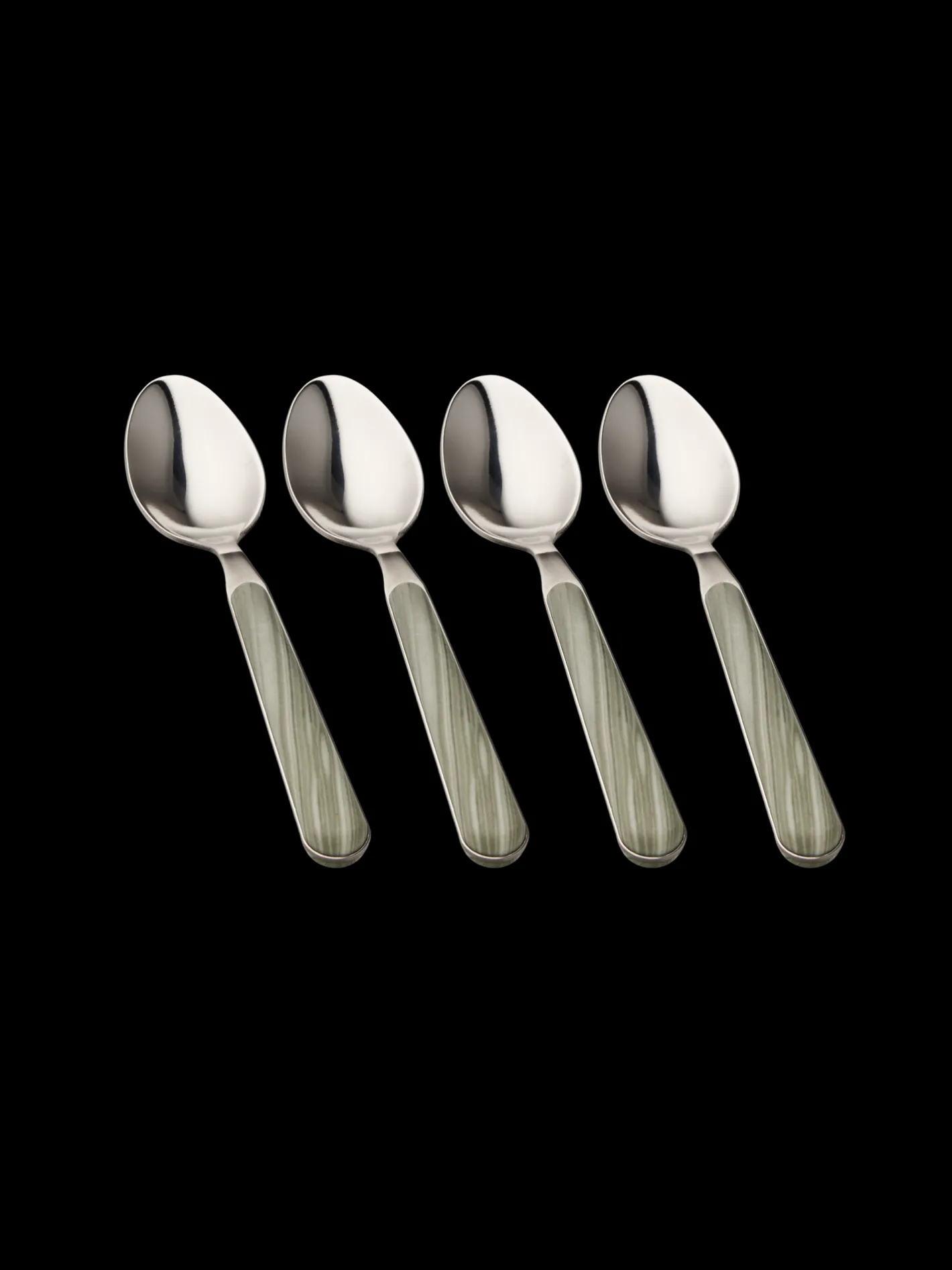 Søstrene gør Dem venligst opmærksom på, at denne vare kun forhandles online.Dette skønne sæt med teskeer fra Neva er lavet af rustfrit stål med et greb i glasfiberforstærket polyester med træ-effekt. Et sæt indeholder 4 teskeer med en længde på 14,7 cm.Anna og Clara ved, at bestik er et væsentligt element i enhver madoplevelse, idet det rummer både funktionalitet og æstetik. Den rigtige borddækning kan gøre underværker, mener Anna og Clara, og Deres samling af knive, gafler, skeer og meget mere fra det italienske brand Neva har været et vidunderligt fund for søstrene.”Bestik er ikke blot redskaber til at spise med; det er en forlængelse af ens personlige stil,” bemærker Anna, mens hun omhyggeligt dækker bordet til en middag med nære venner. “Hvert stykke bestik udstråler kunstnerisk håndværk,” tilføjer Clara med et smil.Tag Deres næste madoplevelse til nye højder med elegant bestik fra Neva.