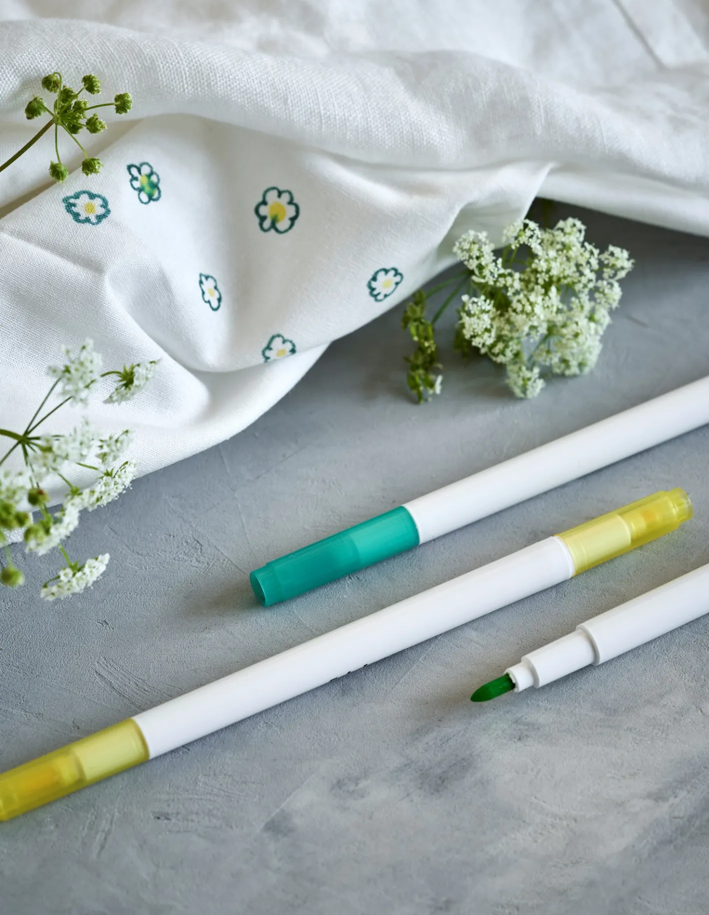 Personliggør Deres tøj med søstrenes 2-i-1 tekstiltusser. En pakke indeholder 12 tekstiltuscher i vidunderlige farver.
