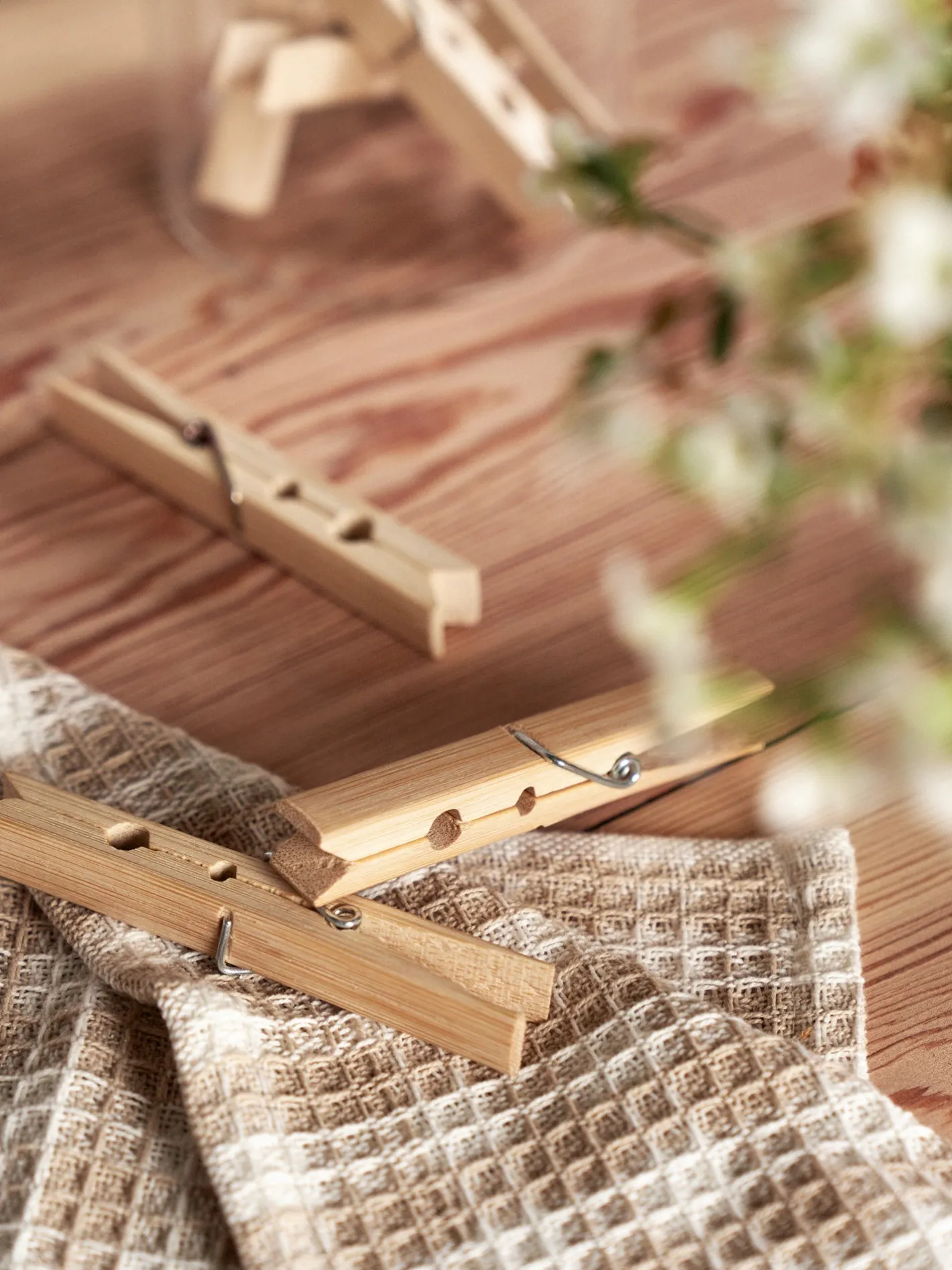 Søstrenes tøjklemmer er lavet af 100% FSC®-certificeret bambus. Gør vaskedagen lidt sjovere med skønne vasketøjsartikler.